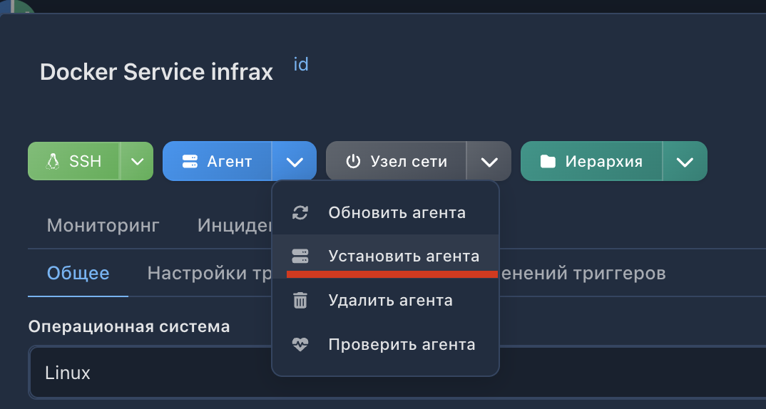 2. Переустановите агент через веб-интерфейс.