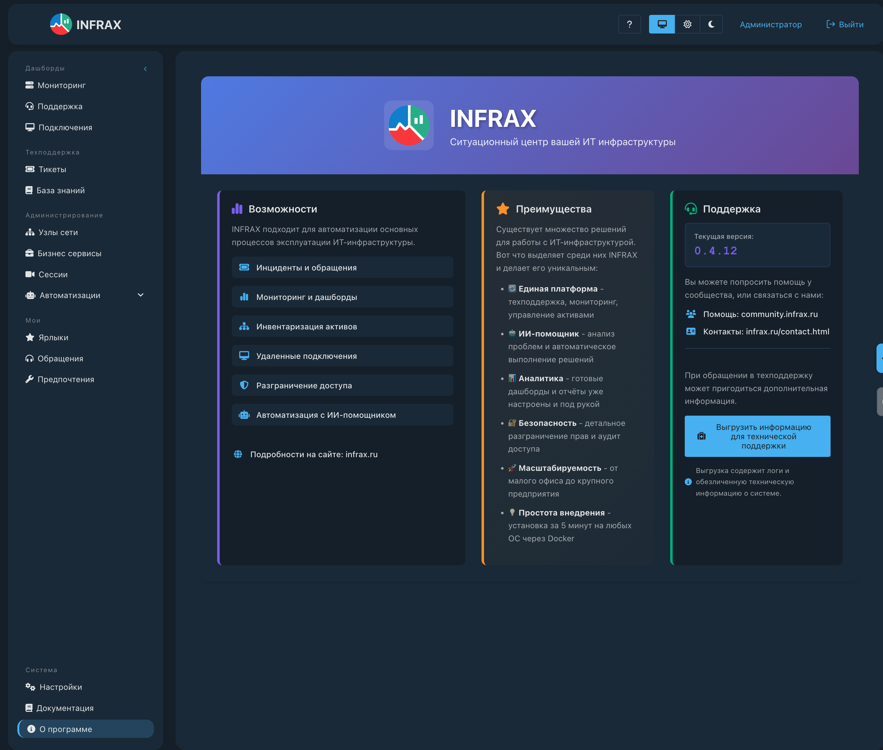 Версию infrax сообщите, пожалуйста.